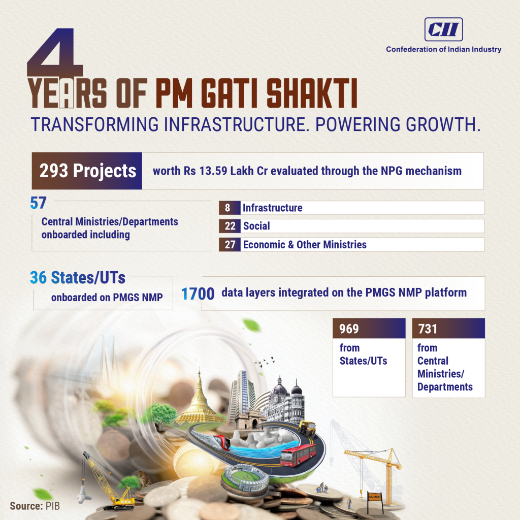 PM Gati Shakti is also vital to India’s Net Zero 2070 ambition by promoting green infrastructure and sustainable logistics solutions. Its cooperative federalism model with Empowered Group of Secretaries, NPG and a Technical Support Unit drives collaboration across all levels of government. Regular regional workshops and stakeholder engagements are deepening adoption and knowledge sharing across the country.